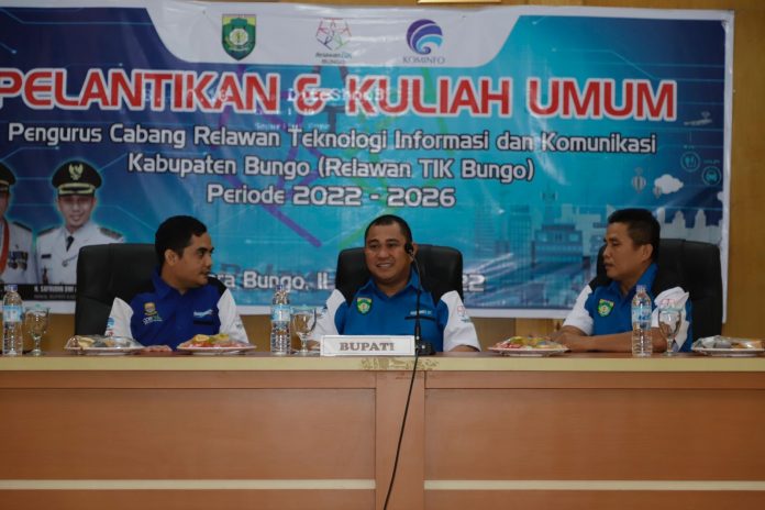 Pengukuhan kepengurusan Relawan TIK Daerah Kabupaten Bungo oleh Bupati Bungo Bupati, dihadiri Pengurus Wilayah Relawan TIK Provinsi Jambi.