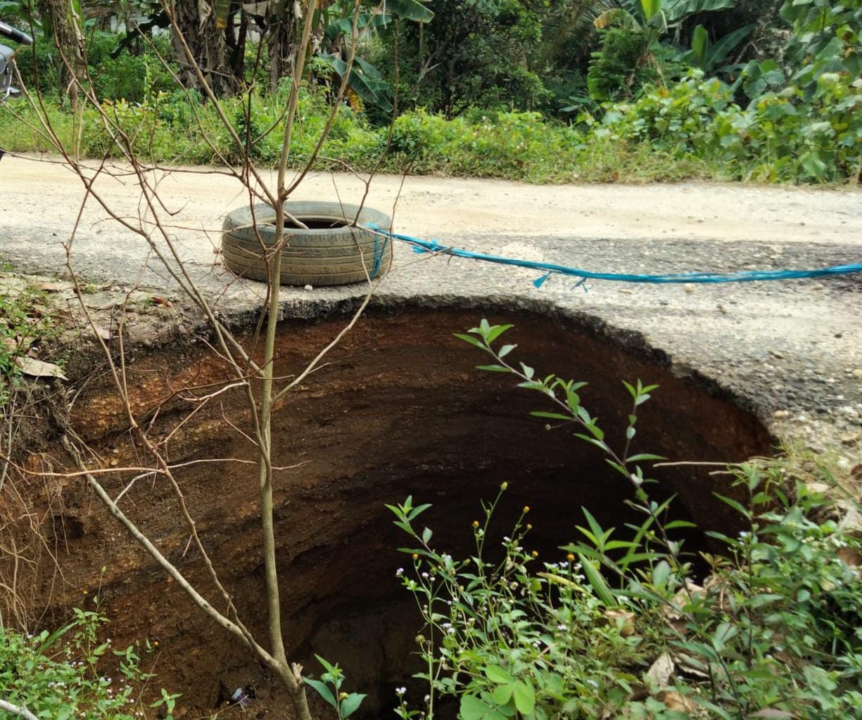 Hingga saat ini belum terlihat adanya perbaikan dan hanya diberikan penanda ranting kayu kering saja, agar pengguna jalan mengindari bagian jalan yang rusak tersebut. “Akses jalanpun belum dapat dilewati oleh kendaraan truk (fuso) namun hanya bisa digunakan oleh sepeda motor saja,” ungkapnya, Jumat (02/12/2022).
