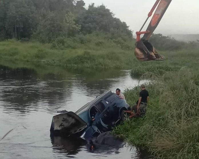 Setelah mobil pajero berplat BH 3 E tersebut masuk ke kanal, kemudian warga setempat bersama karyawan menurunkan alat kontraktor WKS PT SPA melakukan evakuasi.