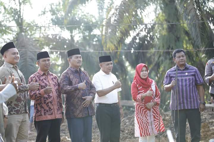 SUMBERNEWS, TEBO – Pj. Bupati Tebo H. Aspan S.T. didampingi Hj. Armayanti Aspan melakukan Peletakan Batu Pertama Pembangunan Madrasah Diniyah Tahfidzul Qur’an dan Pembangunan Mushalla Al Qodiri di Jalan BOR 1 RT 003 Asa Merah Desa Lubuk Mandarsah Kecamatan Tengah Ilir, Sabtu (28/01/2023).