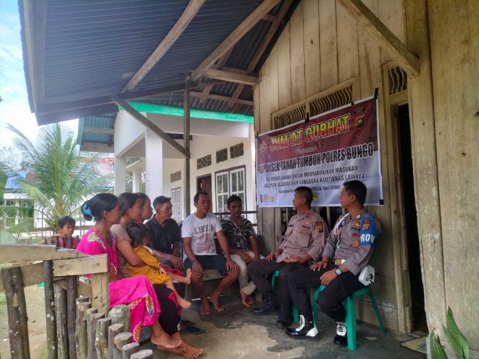 SUMBERNEWS, BUNGO – Polsek Tanah Tumbuk kembali melaksanakan kegiatan Jumat Curhat yang memungkinkan masyarakat menyampaikan secara langsung terkait keluhannya kepada polisi dan diterima langsung oleh Kapolsek Tanah Tumbuh Jum’at 03 Februari 2023.