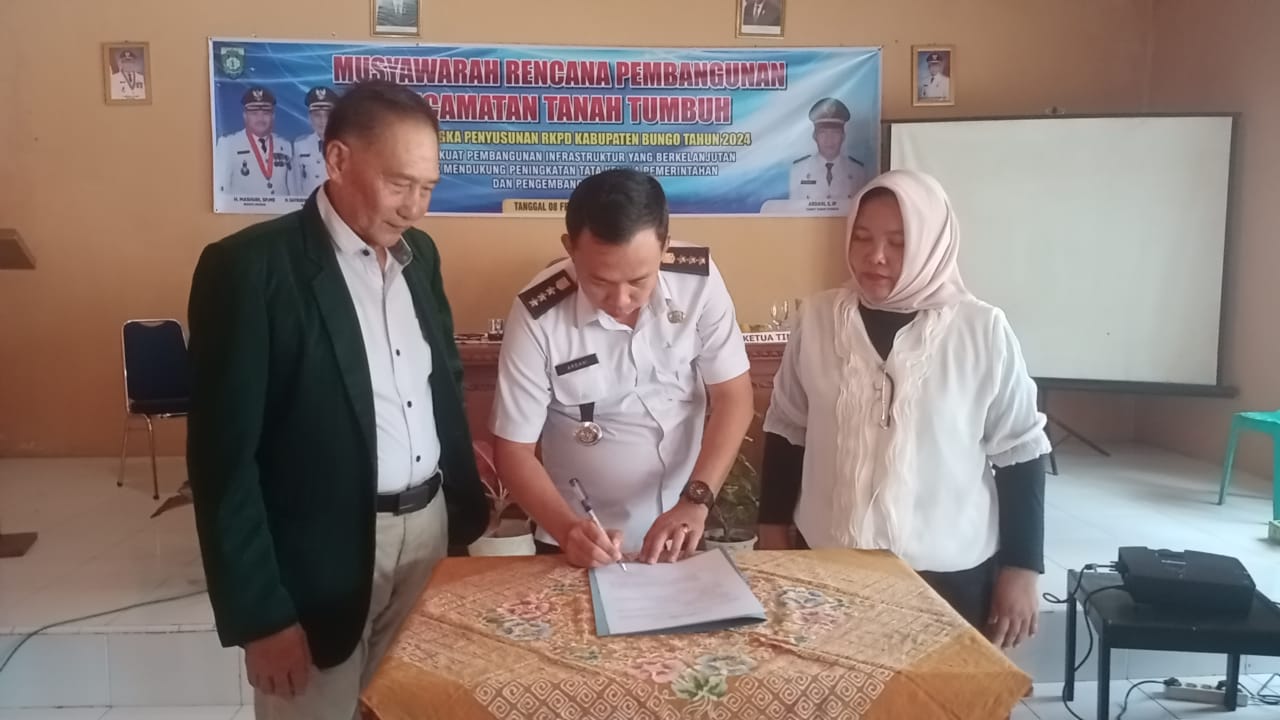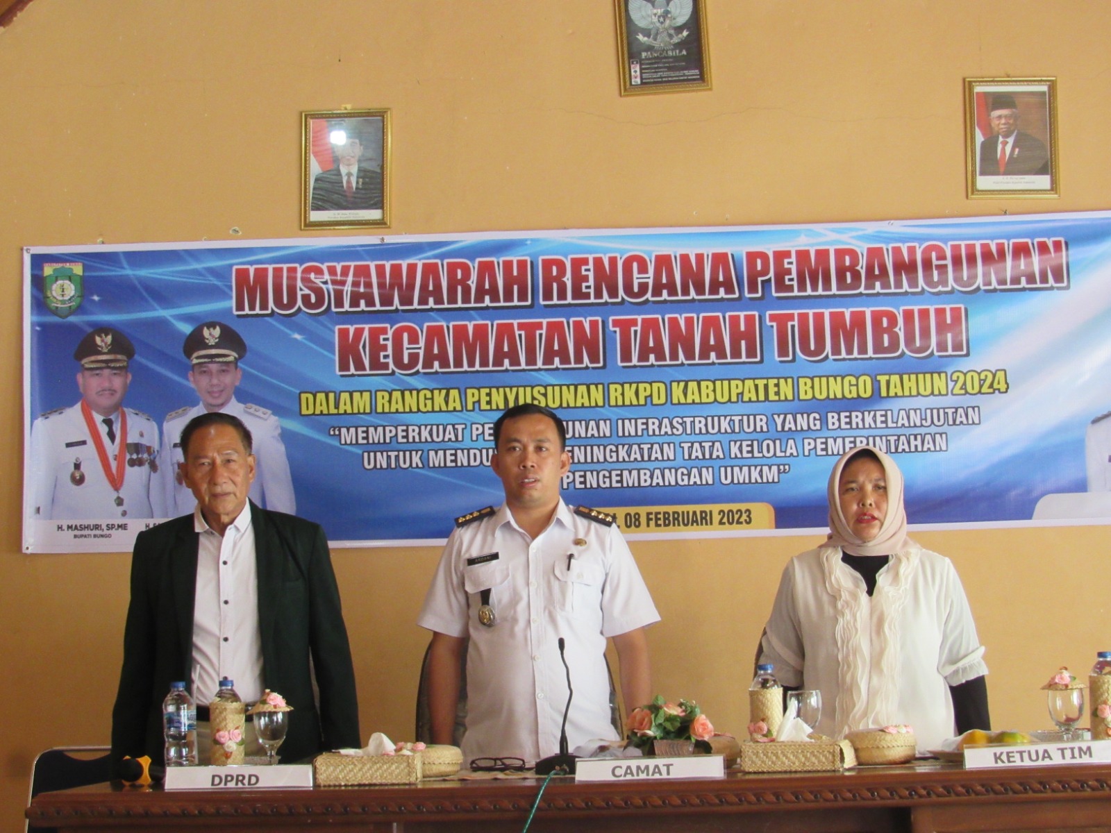 SUMBERNEWS, BUNGO – Pemerintah Kecamatan Tanah Tumbuh sukses menggelar Musyawarah Perencanaan Pembangunan (Musrenbang) dalam rangka penyusunan RKPD tahun 2024.