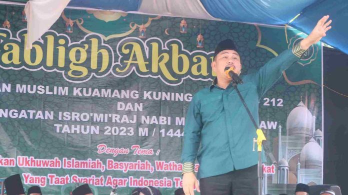 Sementara itu Plt Camat Pelepat Ilir Atun dalam sambutannya menyampaikan warga Kuamang Kuning mengucapkan terimakasih kepada bupati dan Wakil Bupati, serta rombongan menyempatkan diri untuk hadir di acara tabligh Akbar IMKK ke 212 ini.