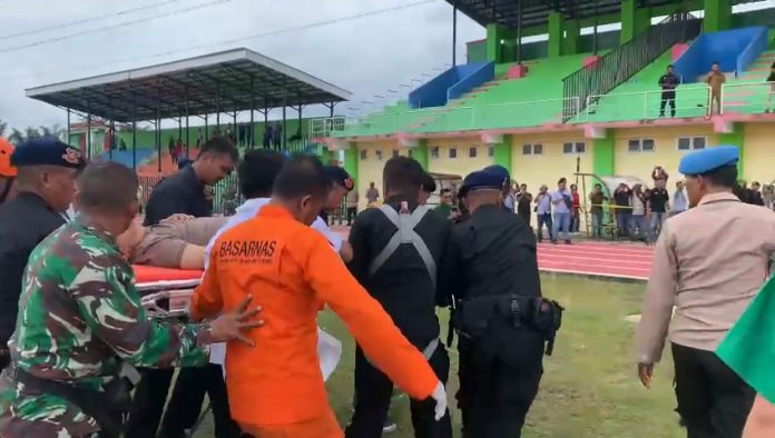 SUMBERNEWS, JAMBI – 4 orang diduga korban helikopter jatuh berhasil di evakuasi menggunakan helikopter, Selasa (21/02/2023). Rombongan mendarat di lapangan Koni Merangin.