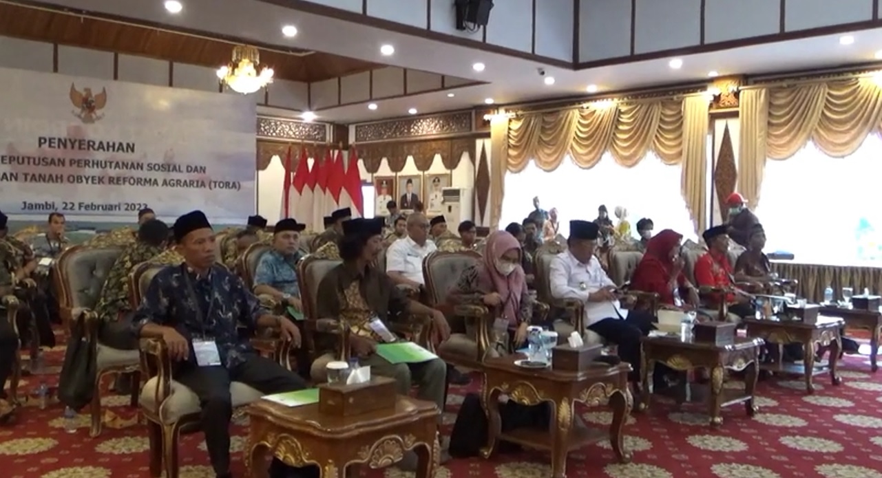 Presiden Republik Indonesia Joko Widodo menyerahkan surat keputusan atau SK Perhutanan Sosial, dan SK Tanah Objek Reforma Agraria atau Tora. Kepada ribuan petani di seluruh indonesia, pada Rabu 22 Februari 2023, di Kalimantan Timur. Kegiatan ini juga di ikuti oleh seluruh provinsi secara virtual, tak terkecuali di provinsi jambi. Yang di hadiri langsung Wakil Gubernur jambi Abdullah Sani, dari ruang Auditorium Rumah Dinas Gubernur.