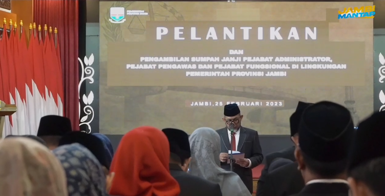 SUMBERNEWS, JAMBI – Sekretaris Daerah (Sekda) Jambi Sudirman resmi melantik 144 Pejabat Fungsional, Administrator dan Pengawas lingkungan Pemprov Jambi, Sabtu (25/02/2023) pagi di Auditorium Rumah Dinas Gubernur Jambi.