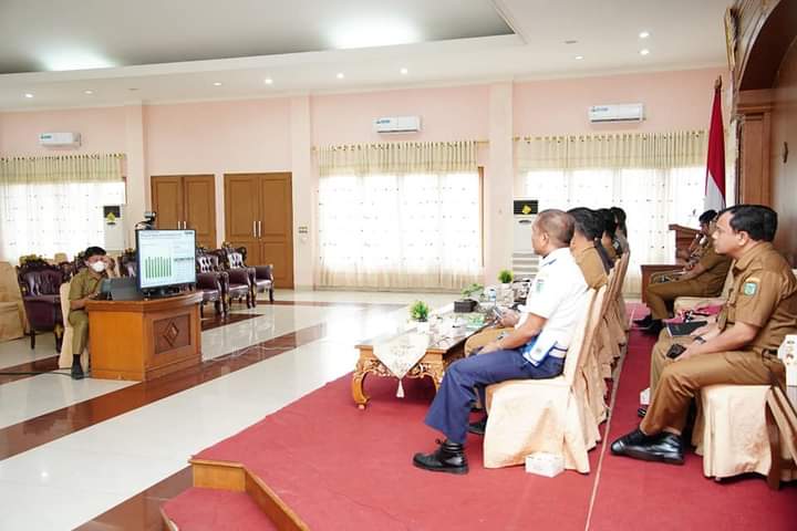 SUMBERNEWS, TEBO – Pj. Bupati Tebo H. Aspan, ST mengikuti Rapat Koordinasi Pengendalian Inflasi bersama unsur Forkopimda dan OPD terkait secara virtual bersama Menteri Dalam Negeri di Pendopo Rumah Dinas Bupati Tebo (27/02/2023).