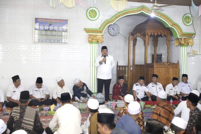 SUMBERNEWS, BUNGO – Bupati Bungo H Mashuri bersama rombongan hadiri kegiatan tahunan Imtihan di Madrasah Miftahul Wathon, Dusun Buat, kecamatan Bathin III ulu, Rabu (08/03/2023).