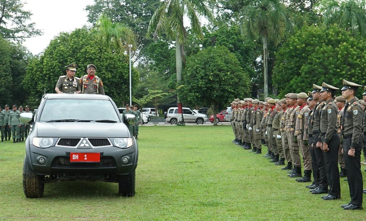 SUMBERNEWS, JAMBI – Gubernur Jambi, Dr.H.Al Haris,S.Sos.,MH., menegaskankan seluruh jajaran Satuan Polisi Pamong Praja (Satpol PP), Pemadam Kebakaran (Damkar) dan Satuan Perlindungan Masyarakat (Satlinmas) untuk meningkatkan kesiap siagaan dalam menjaga ketertiban umum, ketenteraman dan kenyamanan masyarakat serta memberikan perlindungan penuh kepada masyarakat. Hal tersebut ditegaskan Al Haris saat memimpin upacara Peringatan Hari Ulang Tahun (HUT) ke 73 Satpol PP, HUT ke 104 Damkar dan HUT ke 61 Satlinmas, bertempat di Halaman Depan Kantor Gubernur Jambi, Senin (13/03/2023).