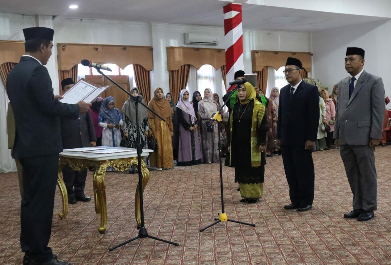 ‘’Selamat kepada bapak dan ibu yang baru dilantik. Bekerjalah dengan penuh semangat, tanggungjawab dan profesional di bidangnya masing-masing,’’ujar Wabup pada pelantikan yang dihadiri sejumlah pejabat eselon II tersebut.
