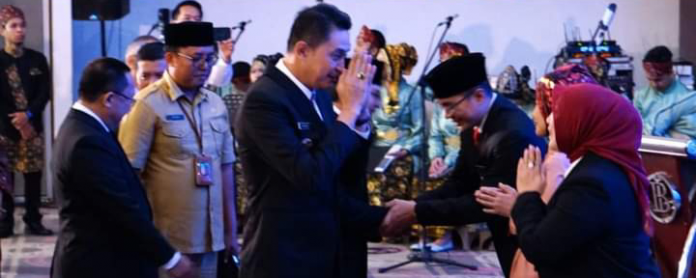 Bachyuni Deliansyah, SH. MH selaku PJ Bupati Muaro Jambi juga memberikan ucapan selamat secara langsung kepada Kepala Perwakilan Bank Indonesia provinsi Jambi yang baru dilantik.