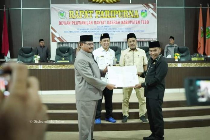 Waka I Aivandri dari fraksi PDIP yang bertindak selaku juru bicara DPRD dalam pandangan akhirnya menerima LKPJ kinerja bupati Tebo dengan sejumlah catatan atau rekomendasi dari 7 (tujuh) fraksi yang ada.