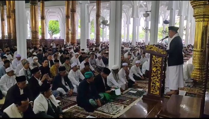 SUMBERNEWS, JAMBI – Gubernur Jambi Al Haris Shalat Idul Fitri bersama ribuan warga. Pelaksanaan shalat Ied ini berlokasi di Masjid Agung Al Falah Kota Jambi. Gubernur Jambi hadir bersama dengan para Pejabat Pemerintah Provinsi Jambi dan para unsur Forkopimda.