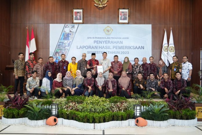 Penyerahan LHP penilaian WTP tersebut, diserahkan langsung oleh Kepala BPK RI Perwakilan Jambi, Rio Tirta kepada Pj Bupati Muaro Jambi Bachyuni Deliansyah di Aula BPK RI Perwakilan Jambi, Jumat (5/5/2023).