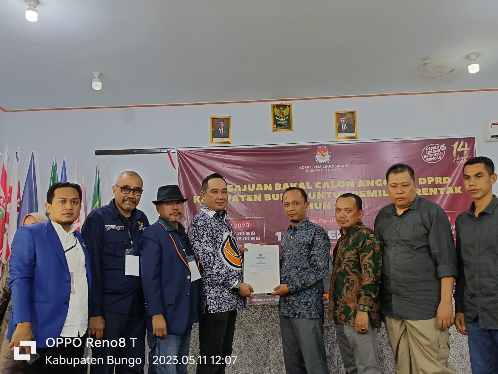 Penyerahan berkas Bacaleg oleh Ketua DPD NasDem Bungo Jumiwan Aguza ke Ketua KPU Bungo Muhammad Bisri