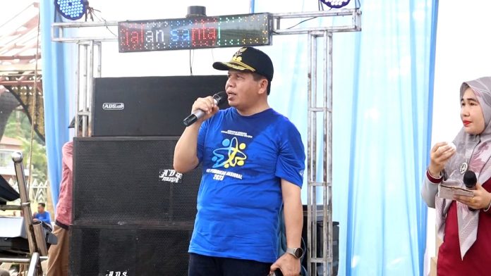 SUMBERNEWS, SAROLANGUN – Penjabat (Pj) Bupati Sarolangun Henrizal, S.Pt.,MM lepas peserta jalan santai dalam menyemarakkan peringatan Hari Pendidikan Nasional (Hardiknas) tahun 2023, Jumat (12/05/2023).