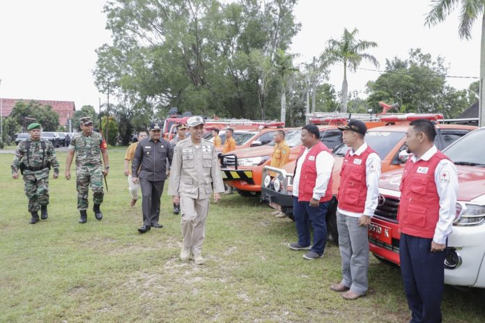 Sebelum menggelar apel, Bupati Bungo, Wakil Bupati, Unsur Forkopimda terlebih dahulu mengecek peralatan Karhutla seperti kendaraan roda dua dan empat.