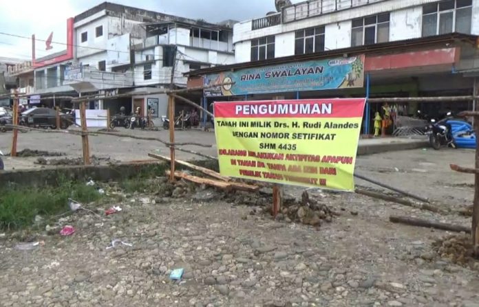 “Sebenarnya kami pemegang mandat pemilik tanah bersertifat atas nama Rudi Alandes ini telah memberi waktu kepada para pemilik Ruko yang berada dibelakang tanah ini, namun hingga saat ini belum ada titik terang, oleh karena itu, pada hari ini kami turun membuat pagar,”ungkap Bambang Rusmanto Pane.