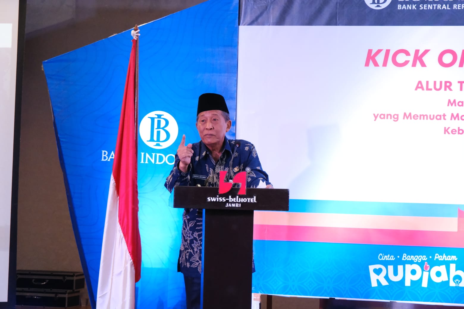 SUMBERNEWS, JAMBI – Wakil Gubernur (Wagub) Jambi Drs. H. Abdullah Sani, M.P.di, mengemukakan, dalam pembelajaran Kick Off Implementasi Alur Tujuan Pembelajaran (ATP) Mata Pelajaran Ekonomi SMA yang memuat materi Cinta Bangga Paham (CBP) Rupiah, agar siswa memahami rupiah secara utuh sebagai alat pembayaran yang sah, sekaligus sebagai simbol kedaulatan negara dan simbol persatuan dan kesatuan bangsa, untuk itu siswa harus paham, cinta dan bangga dengan rupiah. Hal demikian dikemukakan Wagub saat membuka Kick Off Implementasi Alur Tujuan Pembelajaran (ATP) Mata Pelajaran Ekonomi SMA yang memuat materi Cinta Bangga Paham (CBP) Rupiah, Kebanksentralan dan Kebijakan Sistem Pembayaran, bertempat di Swiss-Belhotel Jambi, Sabtu (08/07/2023).
