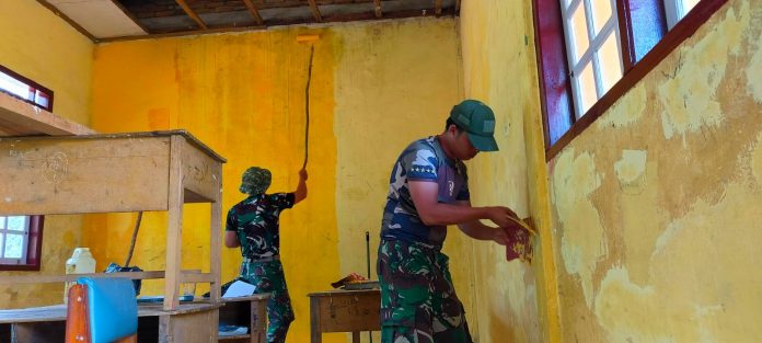 “Prajurit Satgas bekerja keras memasang satu persatu rangka plafon, dan mengecat SD 57/II pengerjaan yang telah dimulai semenjak Pra TMMD tersebut terus dikebut,” ucap Kapten Inf Wakhid Nurohim. (*)
