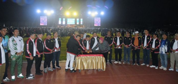SUMBERNEWS, SAROLANGUN – Penjabat Bupati Sarolangun Dr Ir Bachril Bakri, M.App, Sc menghadiri kegiatan open Ceremony pembukaan Pekan Olahraga Provinsi (PORPROV) Jambi ke-XXIII Tahun 2023 di Stadion Tri Lomba Juang KONI Provinsi Jambi, Kota Jambi, Senin (10/07/2023) malam.