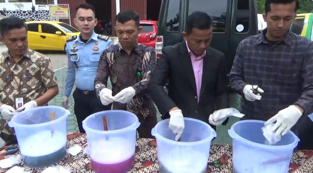 Jumlah barang bukti yang dimusnahkan berupa narkotika jenis sabu seberat 1.062,14 gram, narkotika jenis pil extasi sebanyak 433 butir, timbangan digital dan beberapa bilah senjata tajam.