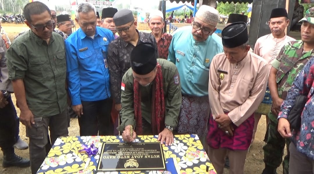 Hal ini di sampaikan secara langsung oleh Bupati Merangin H. Mashuri saat meresmikan Hutan Adat Koto Hayo Sekaligus meresmikan Rumah Singgah desa Rantau Limau Manis, Kecamatan Tabir Ilir, Kabupaten Merangin pada Minggu 13/08/2023.yang dihadiri oleh Kepala Dinas Kehutanan Provinsi Jambi, unsur Forkopimda Merangin, Camat Tabir, Camat Tabir Ilir, Camat Tabir Timur dan para Kepala desa tetangga.