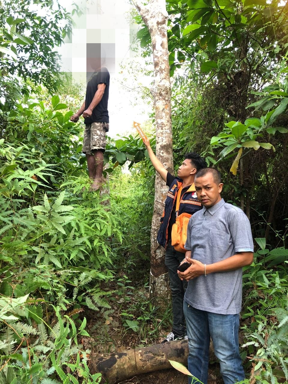 ditemukan tewas tergantung di kebun karet milik warga, korban dengan keseharian sebagai petani dengan 3 orang istri.