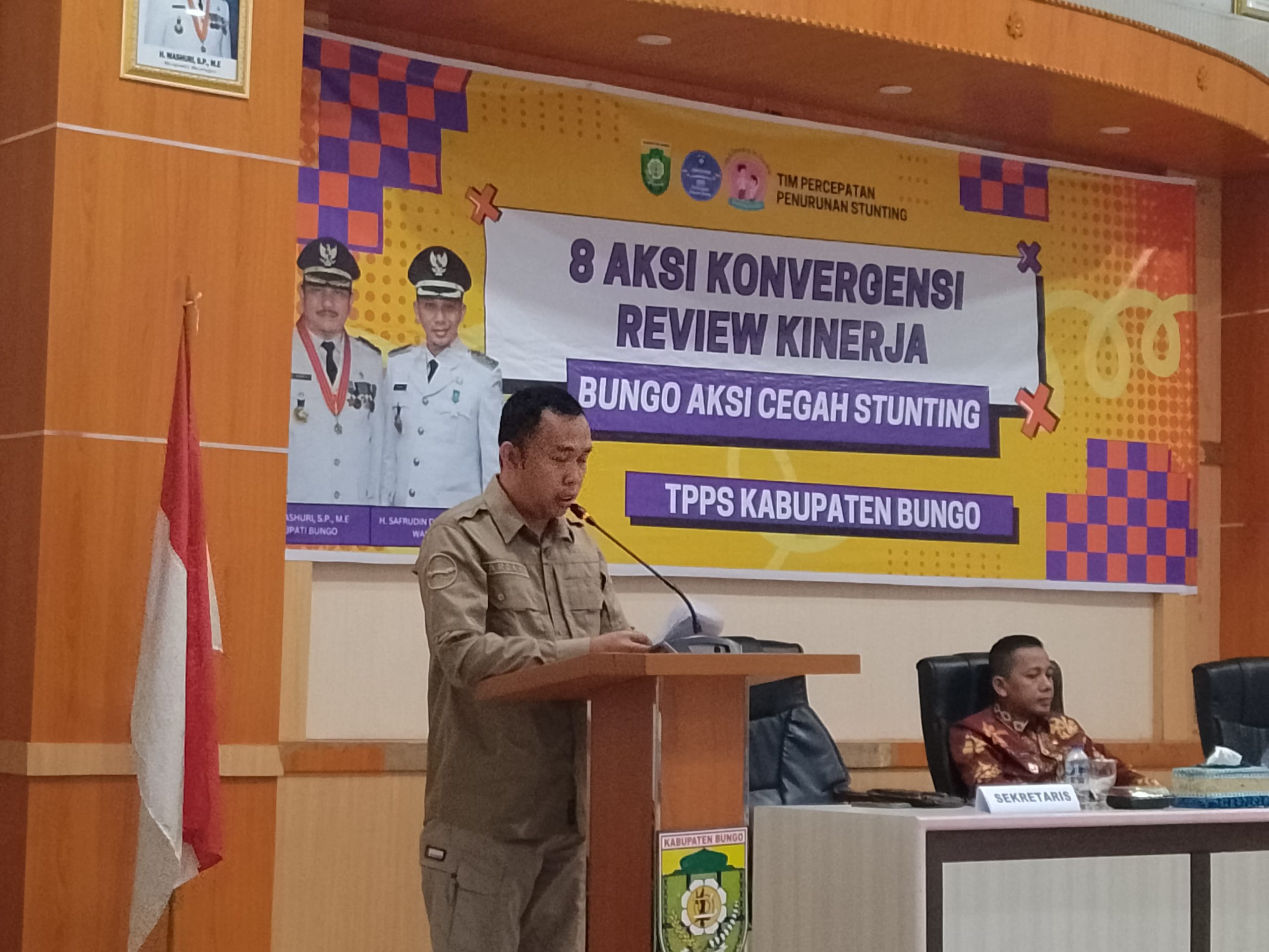 SUMBERNEWS, BUNGO – Tim Percepatan Penurunan Stunting (TPPS) Kabupaten Bungo, Kamis (12/12) menggelar review kinerja 8 Aksi Konvergensi Stunting di aula Cempaka Bappeda Bungo.