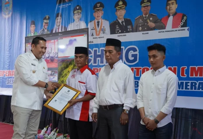 Sebelumnya, Bupati Merangin M Syukur menyerakan secara simbolis sertifikat Akta Badan Hukum (AHU) sebnyak 215 sertifikat kepada KDMP Sido Harjo, KDMP Lego dan KDMP Beringin Sanggul.