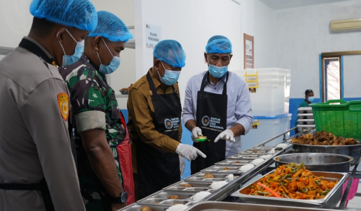 Setelah peresmian, Wabup Khafidh didampingi rombongan langsung meninjau kondisi dapur SPPG. Dalam peninjauan tersebut, Wabup menggunakan Alat Pelindung Diri (APD) lengkap, meliputi masker, sarung tangan, celemek, dan sandal khusus, untuk memastikan standar kebersihan.