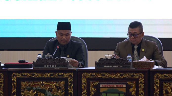 SumberNews, Muara Bungo — Dewan Perwakilan Rakyat Daerah (DPRD) Kabupaten Bungo pada Selasa (25/11) menggelar rapat paripurna dengan agenda penyampaian jawaban pemerintah terhadap pandangan umum fraksi-fraksi DPRD atas Ranperda tentang APBD Kabupaten Bungo Tahun Anggaran 2026 serta beberapa Ranperda lainnya.