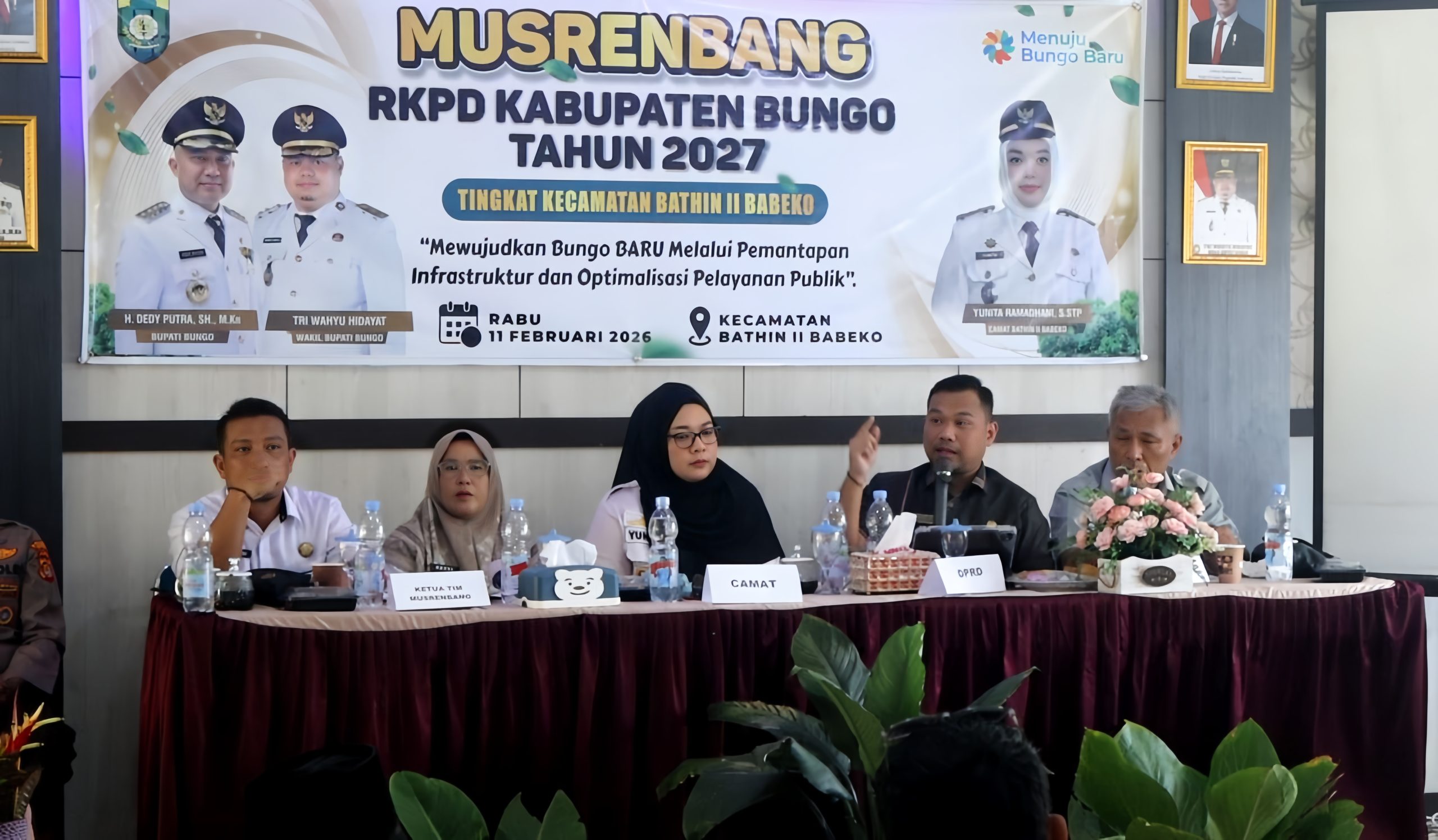 Kegiatan ini turut dihadiri Sekda Bungo Donny Iskandar, tim pendamping Musrenbang Kabupaten, para Rio se-Kecamatan Bathin II Babeko, serta perwakilan Organisasi Perangkat Daerah (OPD) Kabupaten Bungo.