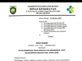 Dinkes Bungo Keluarkan Surat Edaran Larangan Penjualan Obat Sirup