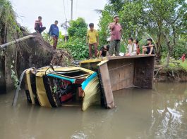 Mobil Didepan Ngerem Mendadak, Truk Colt Diesel Terjun Masuk Sungai